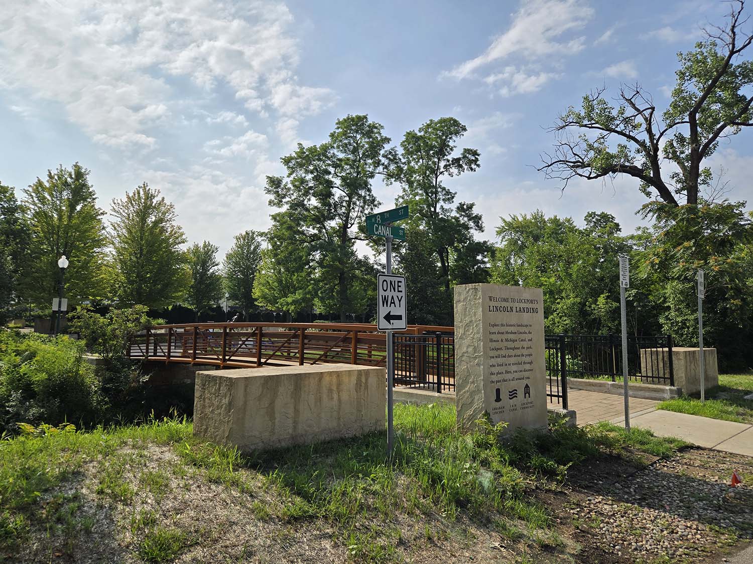 The project replaces an existing pedestrian bridge over the I&M Canal, and with the new bridge, provides a pedestrian connection between residential areas and downtown Lockport including Lincoln Landing, the Historic Gaylord Building, Illinois and Michigan (I&M) Canal Trail, and the Lockport Historic District. The Lincoln Landing is an open-air park and museum that celebrates the original Illinois and Michigan Canal lines and is immediately adjacent to the bridge